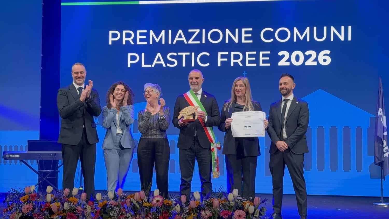 “Le due Tartarughe d’oro di Plastic Free che la città di Pescara ha ricevuto oggi a Roma sono il riconoscimento del lavoro che stiamo portando avanti con determinazione sul fronte della tutela ambientale. Per me, per il Comune, e per la città, che crede in determinati valori sono motivo di grande soddisfazione”. Sono queste le prime dichiarazioni del sindaco Carlo Masci, a margine della cerimonia di consegna delle “Tartarughe d’Oro” ai Comuni italiani riconosciuti Plastic Free, un prestigioso attestato che certifica l’impegno concreto delle amministrazioni locali nella tutela dell’ambiente e nella lotta all’inquinamento da plastica. La cerimonia si è svolta stamani al Teatro Olimpico di Roma.