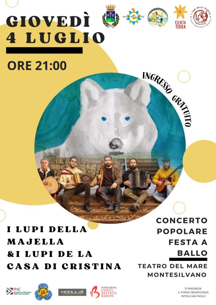 Stasera, 4 luglio, i ragazzi dell'associazione "La casa di Cristina" e i “Lupi della Majella” proporranno a Montesilvano una serata di divertimento con balli e canti popolari abruzzesi. L’intento è quello di rivalutare il patrimonio culturale abruzzese e sensibilizzare e coinvolgere le persone, affinché possano riavvicinarsi alle proprie tradizioni e memorie sociali.