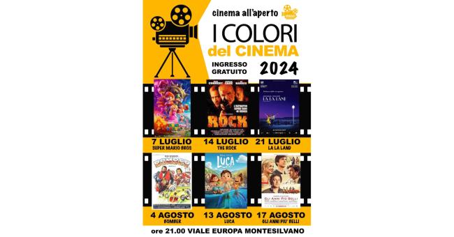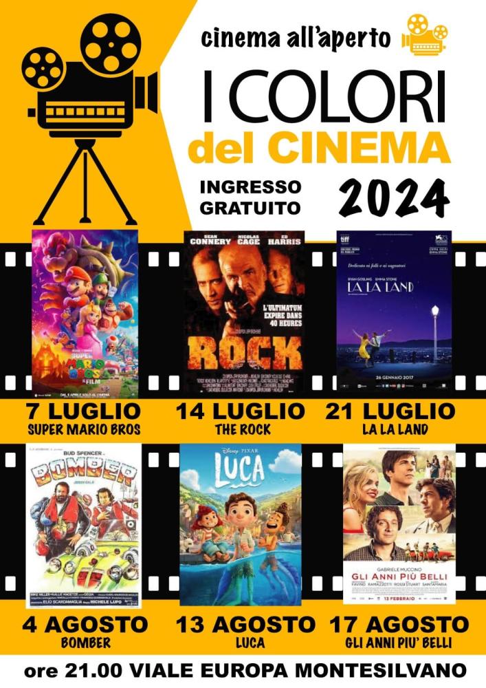 - VIALE EUROPA: ore 21 - Cinema all’aperto “I colori del cinema” 2024 con il film “Super Mario Bros”