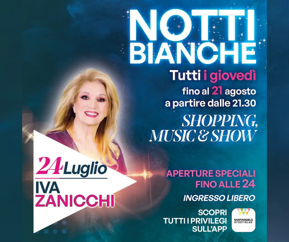 Dopo il successo della serata inaugurale con Max Giusti, che ha visto migliaia di persone affollare le vie del Santangelo Outlet Village, torna l’appuntamento più atteso dell’estate: le Notti Bianche.