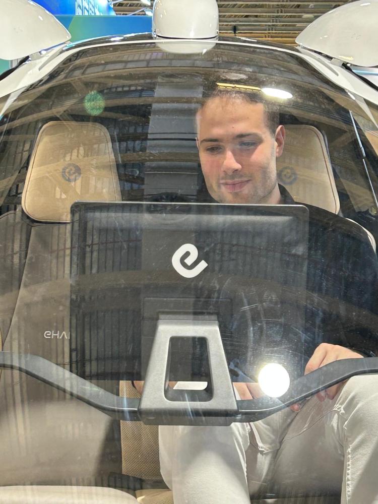 Ecco perché, quando ho incontrato EHang alla fiera, ho provato un brivido di entusiasmo. Il bambino dentro di me—quello che un tempo sognava le auto volanti—si è risvegliato. Non ho resistito ad avvicinarmi al loro stand e a chiedere della possibilità di provare il loro velivolo di persona.