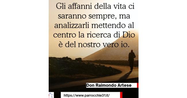 * queste scelte viviamole nella consapevolezza che Dio solo conosce la verità, e che gli affanni della vita ci saranno sempre, ma analizzarli mettendo al centro la ricerca di Dio e del nostro vero io.