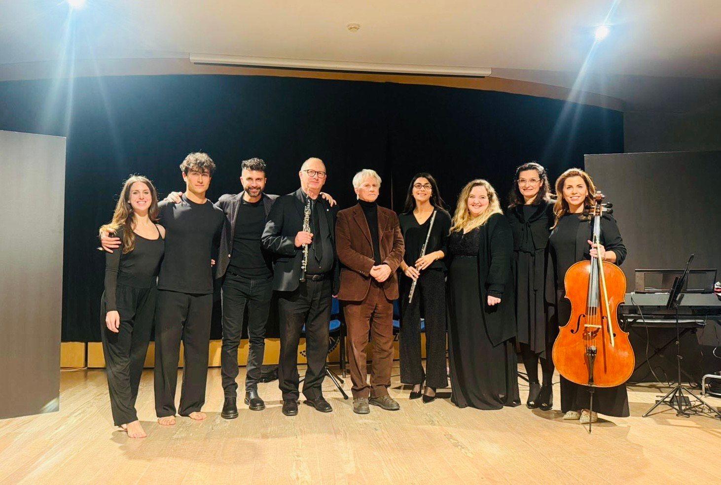 Elemento centrale e fortemente valorizzante dello spettacolo è l’accompagnamento musicale dal vivo, affidato alla Ancestral Chamber Music, orchestra che firma gli interventi musicali con eleganza e rigore. Le musiche non si limitano a sostenere la scena, ma diventano parte integrante della drammaturgia, creando un tessuto emotivo continuo che amplifica la forza evocativa delle parole e dei movimenti.