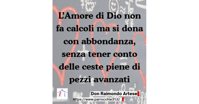 Oggi la Parola vuole dirci che l’Amore di Dio non fa calcoli ma si dona con abbondanza, senza tener conto delle ceste piene di pezzi avanzati, e si è fatta carne per essere nutrimento spirituale di chi si avvicina a Lui.