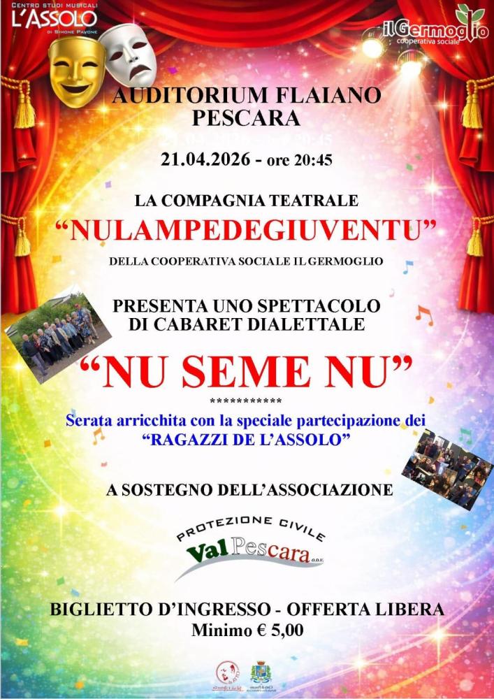Il prossimo 21 aprile 2026, alle ore 20:45, l’Auditorium Flaiano di Pescara si prepara ad accogliere un evento capace di unire comicità travolgente e impegno concreto: “Nu Seme Nu”, spettacolo di cabaret dialettale che promette di conquistare il pubblico.