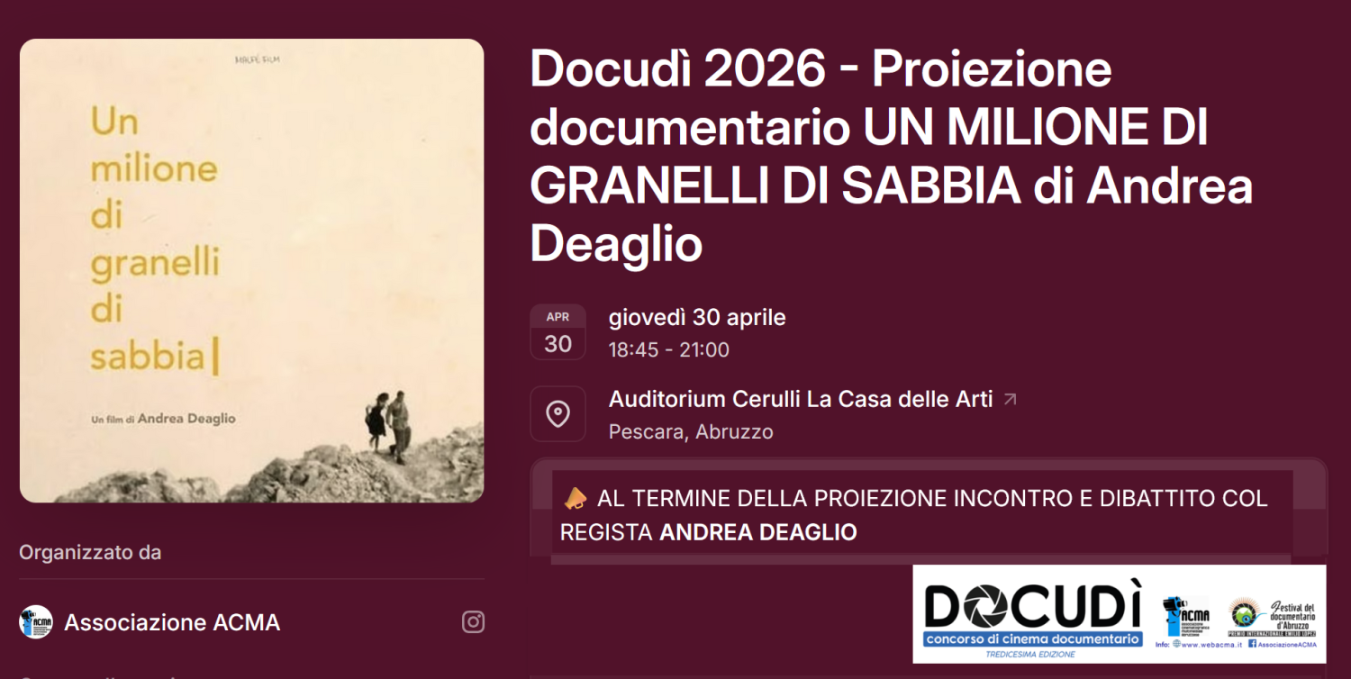 Pagina web https://www.webacma.it/docudi2026-un-milione-di-granelli-di-sabbia/