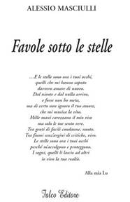 La seconda opera di Alessio Masciulli è una raccolta di cinquanta componimenti poetici: “Favole sotto le stelle” di Falco editore. In essi la forza evocativa della parola si tramuta in immagini e suggestioni, talmente reali da sembrare quasi possibile sfiorarli con mano. Una vita che diventa poesia e una poesia che si riempie di vita: è questa, in sintesi, la concezione di poetica che Alessio Masciulli affida ai suoi componimenti, leggeri e profondi insieme come il volo che solo l’anima è in grado di spiccare, una volta lasciata a terra la pesante coltre di convenzioni quotidiane.