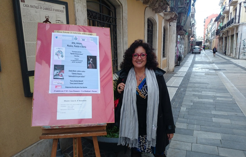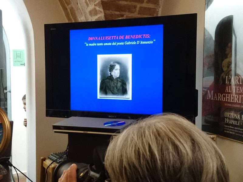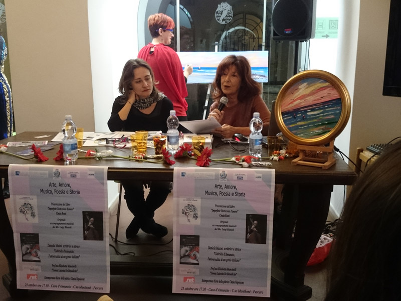 Dopo l'intervento della Musini, Cinzia Rossi ha presentato la storica, amica e nostra collaboratrice Elisabetta Mancinelli (leggi gli articoli di Elisabetta) che ha presentato la figura di Donna Luisetta de Benedictis, madre di Gabriele D'Annunzio, insieme a Roberta Livraga che ha eseguito delle letture di poesie che il Vate ha dedicato proprio alla madre.
