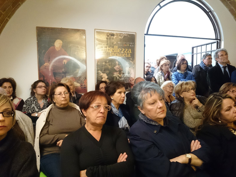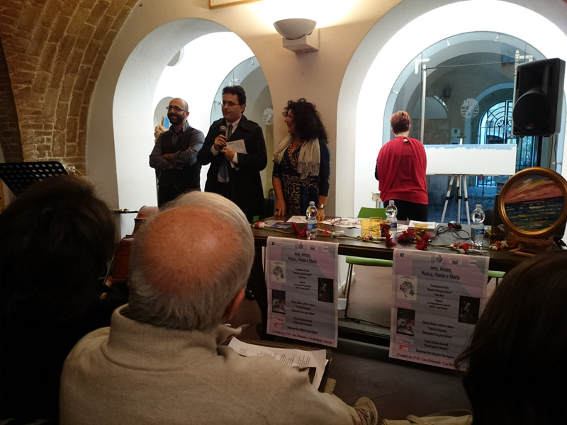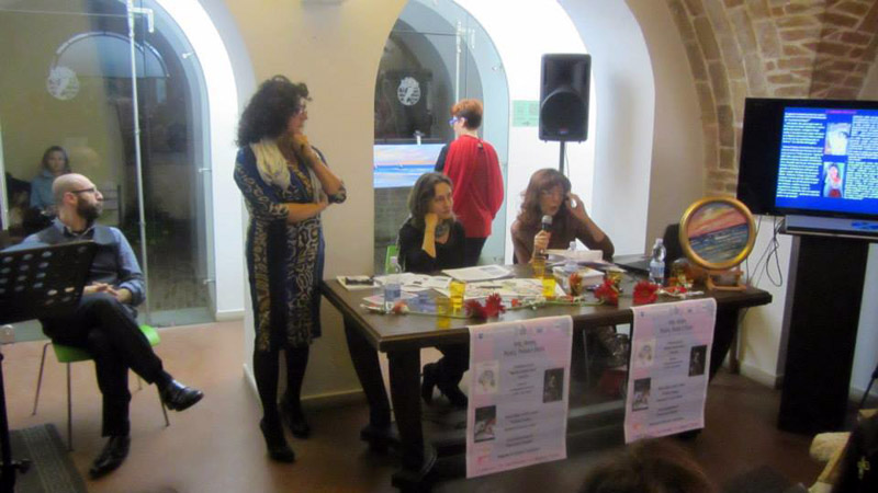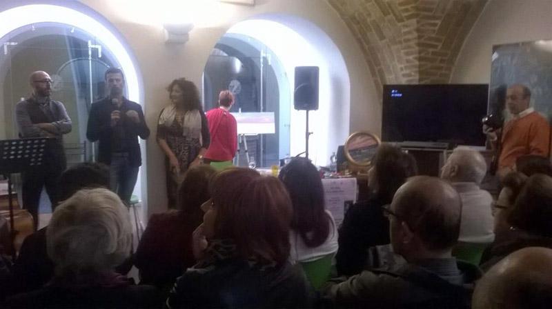 Dopo le presentazioni e i saluti istituzionali della funzionaria della Soprintendenza dei Beni Culturali Luisa De Tommaso e del Presidente del Consiglio comunale di Pescara Antonio Blasioli, Cinzia Rossi ha ringraziato i due parner dell'iniziativa, il centro stampa Inprinting e Pescara News chiamando Francesco Spina fondatore di Cittanet a salutare i presenti e a presentare il suo progetto di informazione locale. Al termine dei saluti e dei ringraziamenti Cinzia Rossi ha presentato gli ospiti che l'hanno accompagnata durante la serata.