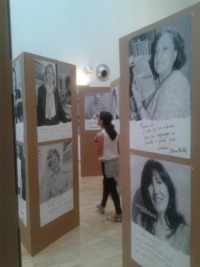 Ginevra Di Matteo ha immortalato nei suoi ritratti fotografici i volti di alcuni poeti locali, che hanno concesso oltre al loro viso anche una frase, un aforisma sul senso della poesia, che, ha spiegato Pamio, “per ciascun poeta sta nel ripetersi ogni volta nel miracolo della prima parola detta, per il lettore nell’ascolto dell’altro e infine per tutti nel realizzarsi di un’unica idea, quella della Poesia”.
