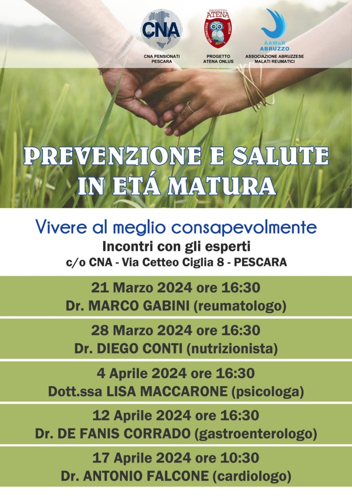 Cinque incontri presso la CNA di Pescara dal 21 marzo al 17 aprile con medici esperti in malattie presenti in molte persone di età matura