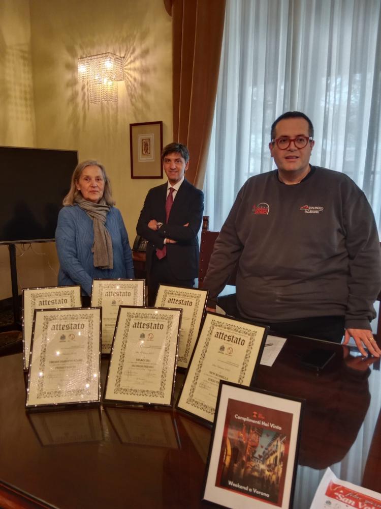 I commercianti di Corso Vittorio Emanuele II, stamattina, presso la Sala Giunta del Comune di Pescara, hanno concluso l’evento iniziato il 14 febbraio nel giorno di San Valentino con l’assegnazione degli attestati a chi ha partecipato allestendo la vetrina del proprio negozio in tema con la ricorrenza.