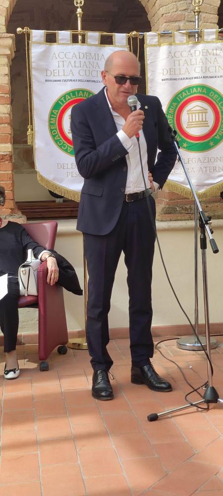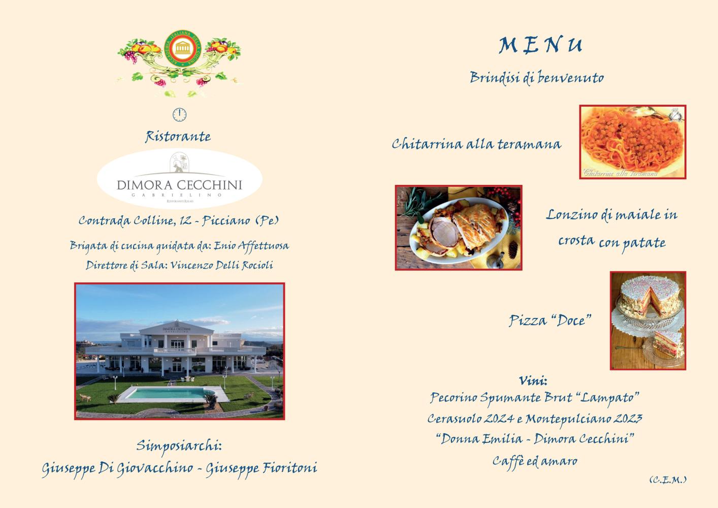 La giornata conviviale è continuata presso il ristorante Dimora Cecchini in Contrada Colline di Picciano accolti dal titolare Gabriele Armenti, Presidente Associazione Ristoratori FIPE Pescara, dalla Brigata di cucina guidata da Enio Affettuosa e dal Direttore di Sala Vincenzo Delli Rocioli. Simposiarchi della conviviale i due Delegati pescaresi Giuseppe Di Giovacchino e Giuseppe Fioritoni. L’incontro è stato l’occasione per una piacevole convivialità all’insegna dell’amicizia e della cultura e la scampanellata, delle campane delle delegazioni, ha chiuso con brio la piacevole giornata.
