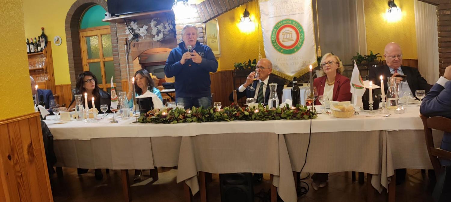 “Quest’anno -ha detto il Delegato Dott. Giuseppe di Giovacchino introducendo l’argomento- il tema scelto è stato Lo studio e la ricerca che l’Accademia svolge su tutto ciò che riguarda la Civiltà della Tavola, passano anche attraverso un’intensa attività conviviale, che costituisce occasione d’incontro e di fervido scambio d’idee tra gli Accademici. Le riunioni conviviali culminano, una volta l’anno, nella cena ecumenica, quando, il terzo giovedì di ottobre, alla stessa ora, tutte le Delegazioni e Legazioni del mondo si riuniscono intorno alle mense per valorizzare o riscoprire un prodotto diverso ogni anno.