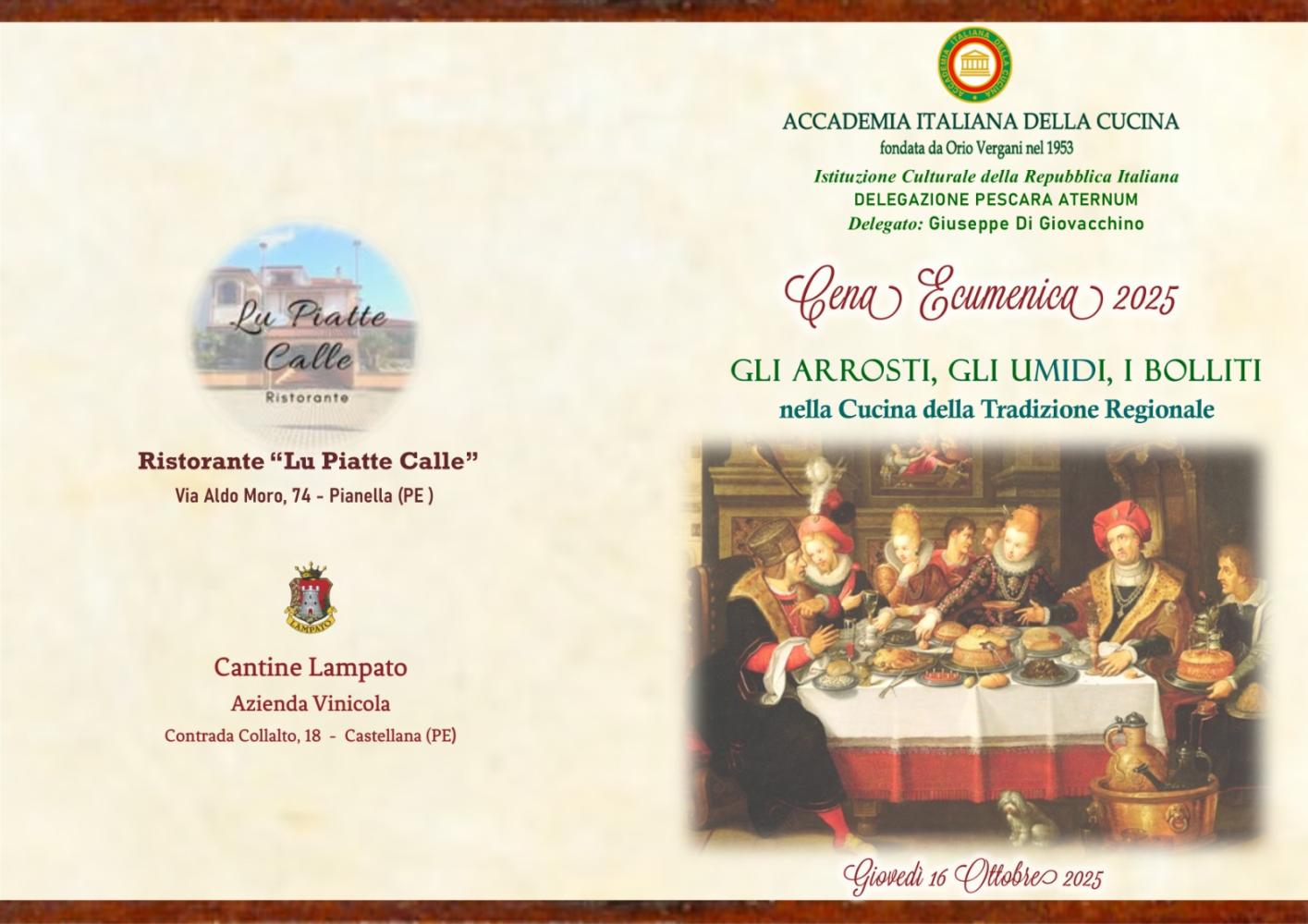 Ieri, presso il ristorante Lu Piatte calle di Pianella, la Delegazione Pescara Aternum dell’Accademia Italiana della cucina, ha celebrato la cena ecumenica che si svolge nello stesso giorno in Italia e in tulle le delegazioni e legazioni del Mondo.