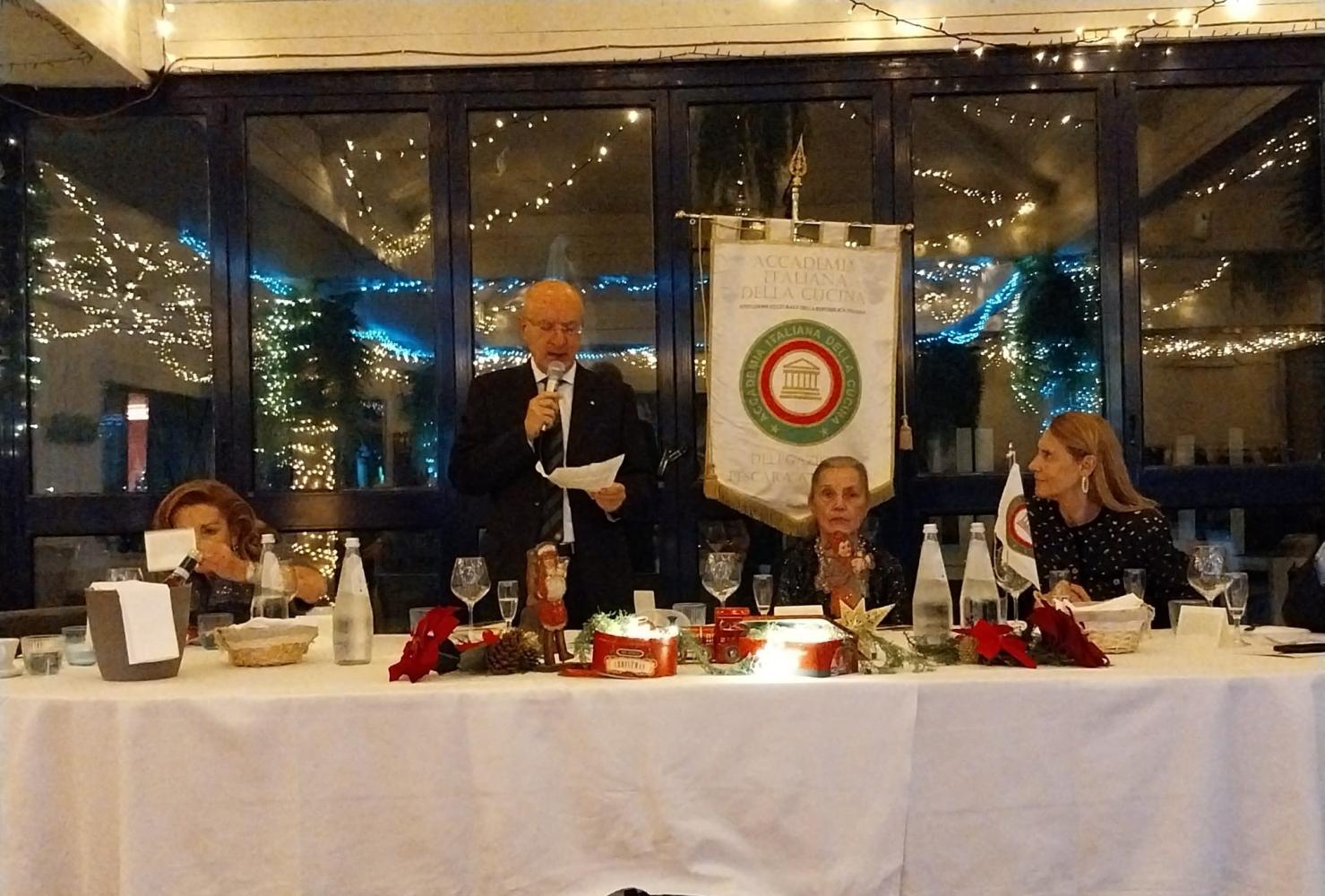A salutare, prima dell’inizio della cena conviviale, i tanti invitati, il vice Delegato Vincenzo D’Antuono che ha voluto ricordare l’importanza della vigilia di Natale e della tradizione culinaria che lega tutta l’Italia in un ideale fil rouge con l’utilizzo di prodotti locali.