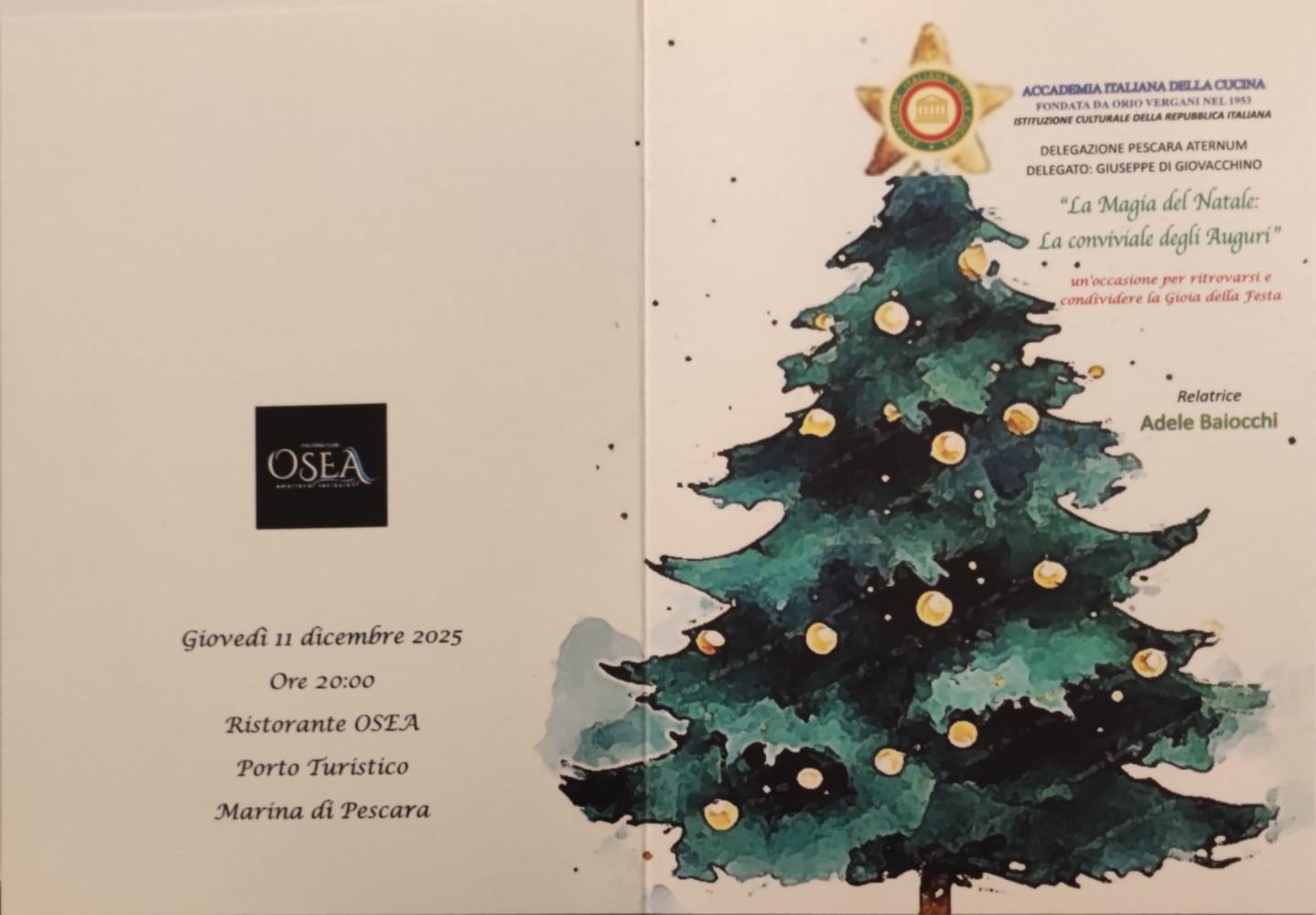 Conviviale natalizia per la Delegazione Pescara Aternum dell’Accademia Italiana della Cucina, giovedì 11 dicembre, presso il ristorante OSEA di Pescara.