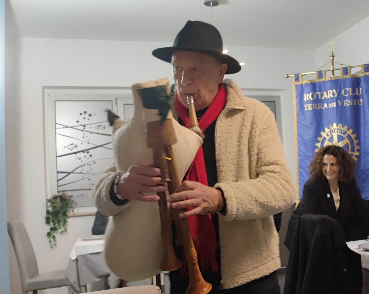Animatore della serata Pierpaolo Di Rocco, ex Presidente, che insieme al direttivo ha organizzato gli eventi. Sui tavoli come segnaposto degli alberelli di Natale confezionati dai ragazzi dell’Unitalsi. La serata è stata allietata da Luigi Pomponio, con la sua zampogna, che ha anche spiegato come è costruito tale strumento rupestre che trova origine nel Molise.