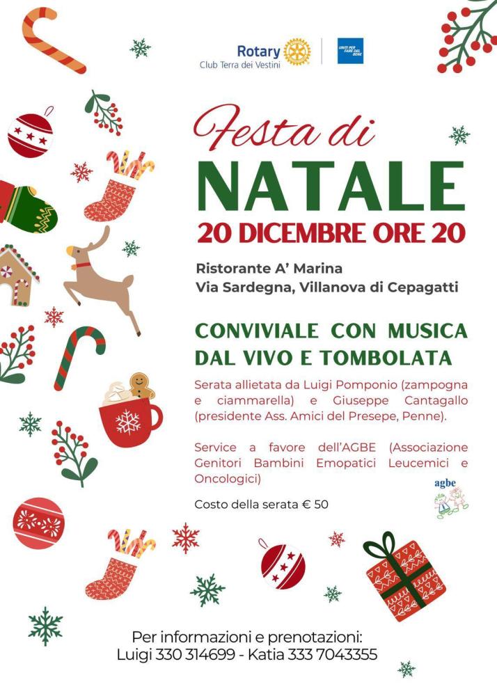 Ieri sera, 20 dicembre, tante persone (socie, parenti, amici e conoscenti vari) hanno partecipato con entusiasmo alla cena organizzata dal Rotary Club Terra dei Vestini presso il ristorante A' Marina di Villanova di Cepagatti.