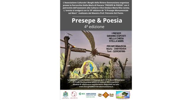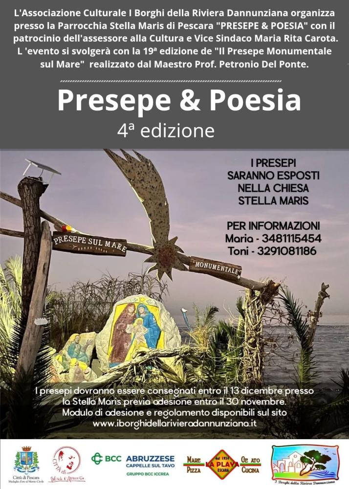 A conclusione della 4ª edizione del Concorso Presepe & Poesia organizzato dall'associazione culturale I Borghi della Riviera Dannunziana con il patrocinio dell'assessore alla cultura di Pescara Maria Rita Carota, della Provincia di Pescara e della Presidenza del Consiglio Regionale, facente parte del programma Pescara D'Incanto, che si è svolta alla Parrocchia Beata Vergine Stella Del Mare, vedrà premiati: