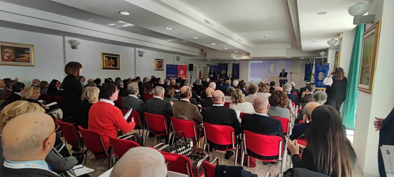 La sala del Grand Hotel Adriatico Adriatico, stamattina 22 febbraio, era gremita di soci giunti per partecipare all’incontro per discutere di un argomento importante: l’Effettivo. Una giornata educazionale di formazione e informazione, dedicato alla crescita, alla cura e al coinvolgimento dei soci, vero motore del club. Tutti gli interventi hanno avuto come narrazione ed obiettivo la riflessione sulla composizione di ogni club e la sua promozione attiva con anche l’accoglienza di nuovi soci. L’occasione dell’incontro è stata anche quella di fare una riflessione, oltre le tematiche specifiche, su come i mutamenti sociali ed economici influenzano i rapporti dei vari club con le comunità di riferimento.