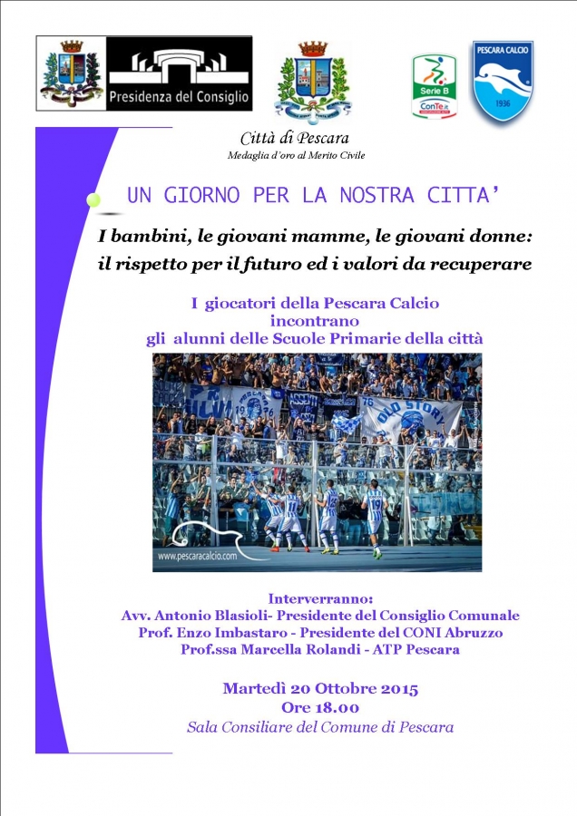Oltre al Presidente del Consiglio comunale Antonio Blasioli, saranno presenti l'assessore allo sport Giuliano Diodati, il Presidente regionale del Coni Enzo Imbastaro, la professoressa Marcella Rolandi ATP di Pescara e molti giocatori della Pescara Calcio.