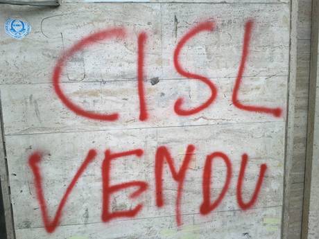 Atti vandalici ai danni della sede della Cisl Abruzzo, in via dei Sanniti, a Pescara. Ignoti hanno imbrattato le mura esterne con scritte offensive e ingiurie di colore rosso, rivolte sia alla stessa Cisl ("Venduti") che al segretario della Funzione pubblica, Vincenzo Traniello.