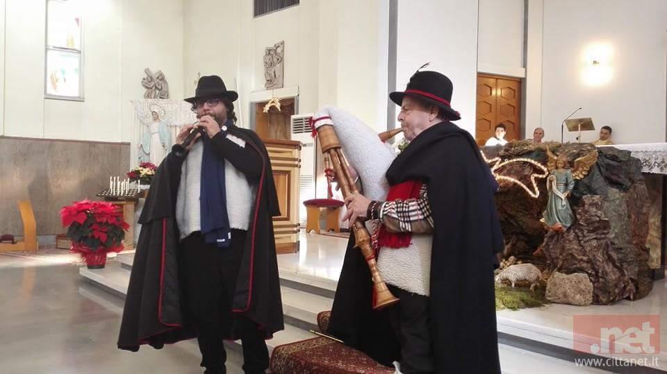 Natale è passato da due soli giorni, ma una gradita sorpresa ha allietato i fedeli e i bambini della parrocchia San Luigi di Portanuova nella messa di questa mattina. A sorpresa sono entrati intonando canti natalizi gli Zampognari di Loreto Aprutino. Grazie al parroco Don Carmine che li ha accolti all'interno della chiesa, i due pastori hanno intonato le note di "Tu Scendi dalle stelle" prima della messa domenicale dedicata quest'oggi alla Sacra Famiglia.