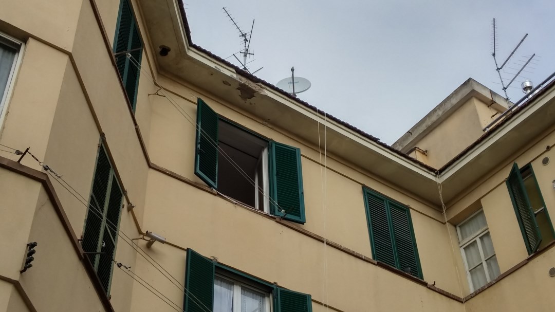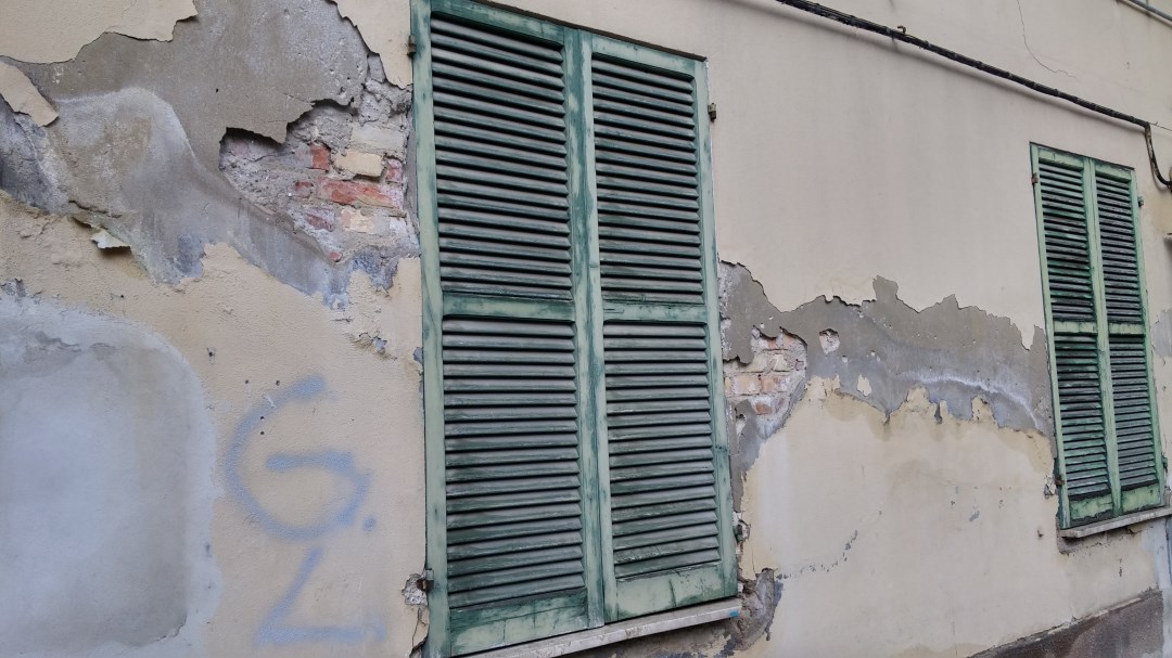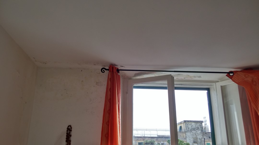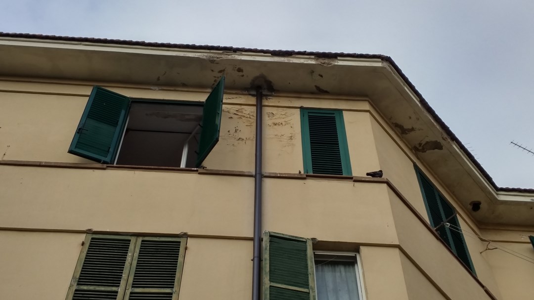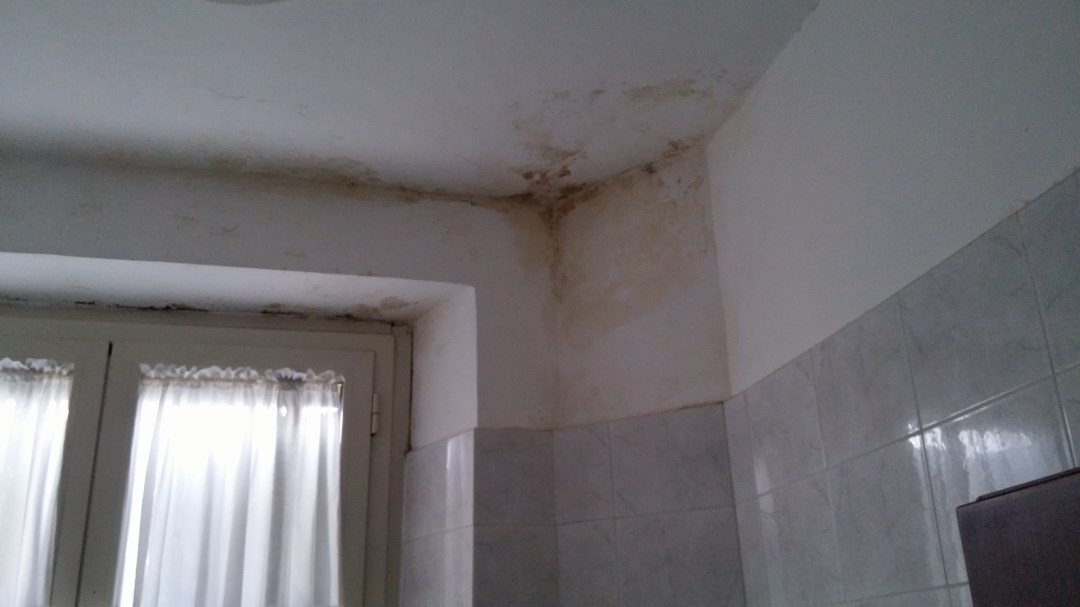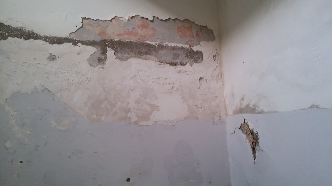 Muri pieni di infiltrazioni, acqua che penetra dalle finestre quando piove, tamponature esterne saltate e intonaci che cadono a pezzi.