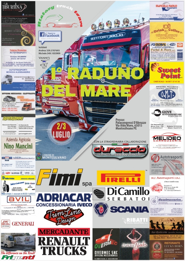 I rumori, la bellezza, le caratteristiche estetiche e cromatiche dei camion saranno i protagonisti di due giornate ricche di emozioni e divertimento in programma al Palacongressi di Montesilvano (PE) in occasione del primo "Raduno del Mare". La manifestazione internazionale, a cura dell'associazione History Truck Team, si terrà sabato 2 e domenica 3 luglio 2016, e vedrà la partecipazione di oltre 130 camion.