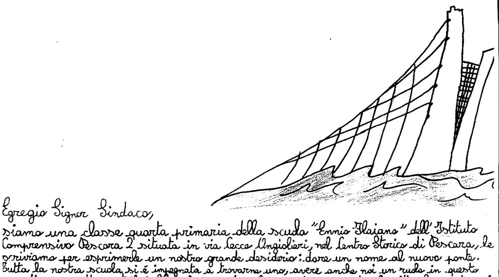 I bambini della 4A della scuola primaria Ennio Flaiano hanno inviato una lettera al sindaco di Pescara, Marco Alessandrini, chiedendo di intitolare il Ponte Nuovo a Ennio Flaiano.