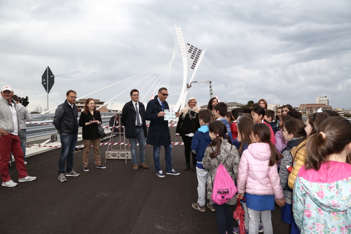 "Domani e dopodomani inizieranno i collaudi – ha illustrato le prossime fasi prima dell'apertura il vice sindaco e assessore ai Lavori Pubblici Antonio Blasioli - Undici camion proveranno a turno la resistenza delle campate, la relazione sarà inviata al Genio Civile e volta ottenuto il placet l'opera andrà alla città e lo faremo con una festa. E' un'opera che nasce per risolvere un problema di mobilità grande che Pescara soffre, distogliendo dal centro un traffico che potrà essere diretto a destinazione senza preamboli e giri all'interno della città . Abbiamo voluto invitare i ragazzi sul ponte non solo perché potessero rendersi conto di persona di cosa significa la nascita di una grande opera, ma anche perché possano raccontare ai genitori che è un ponte su cui si può transitare in auto e in bicicletta, che va utilizzato per dare una migliore vivibilità alla città e che va conosciuto, in quanto la sostenibilità a cui richiama, gli appartiene. Infatti il ponte auto produce illuminazione grazie ai pannelli fotovoltaici posti sulla sua vela. Ringraziamo di cuore i ragazzi che hanno proposto il nome, insieme a tutti quanti gli altri che lo hanno proposto, mesi fa anche in seno al Consiglio delle bambine e dei bambini la proposta era stata avanzata. Siamo certi che sia una scelta che rende onore al talento, ma anche all'identità cittadina e abruzzese di cui Flaiano è di certo una delle voci più belle".