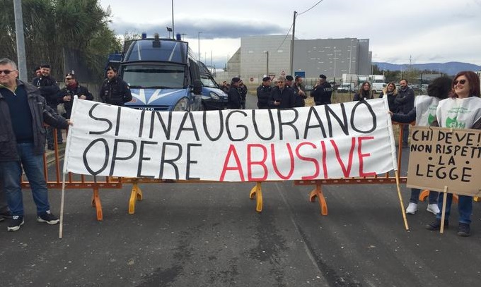I manifestanti, tutti residenti nella zona dove è stato realizzato l'impianto, stanno portando avanti da tempo la protesta contro la costruzione.