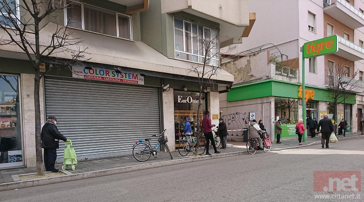 Altri, invece, sia in via Venezia che in via di Sotto ai Colli, in coda per fare la spesa, creano un lungo serpentone mantenendo diligentemente le distanze in attesa del loro turno.