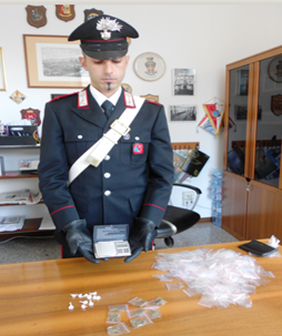 Una volta all’interno, insospettiti dall’atteggiamento dei presenti, hanno perquisito l’appartamento rinvenendo nel vano del contatore gas una busta contenente 8 dosi di marijuana del peso complessivo di 15 grammi, già confezionata, e 11 dosi di ecstasy, un bilancino di precisione e oltre mille bustine di plastica da utilizzare per il confezionamento delle dosi.