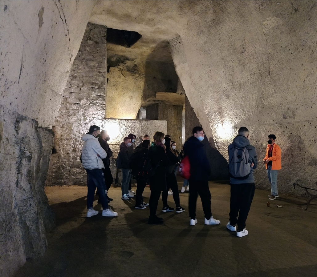 La visita della Napoli dei Borboni, preparata e guidata dalle docenti Silvana Britti e Rita Petaccia, è stata la perfetta conclusione del progetto. Gli studenti, unendo la conoscenza del territorio alla pratica linguistica, hanno sperimentato le competenze acquisite partecipando da protagonisti alla visita dei monumenti più rappresentativi della dinastia dei Borboni durante il regno di Napoli, in particolare la Galleria Borbonica, che durante la II guerra mondiale divenne rifugio per migliaia di napoletani. Dopo il conflitto venne utilizzata come deposito giudiziario municipale, poi, grazie all’opera di speleologi e geologi, tutta l’area sotterranea è stata recuperata e oggi in questo museo ci si può avventurare in percorsi nuovi ed emozionanti.