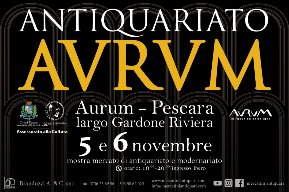 Una manifestazione che dopo il successo dei primi appuntamenti vede il trionfo del bello e della qualità all’interno del suggestivo edificio Aurum, sinonimo di bellezza e di storia, motivo d’orgoglio per l’intera collettività . Per questa terza edizione saranno circa 30 gli antiquari italiani che proporranno i loro tesori di assoluta eccezione, tra oreficeria, ebanisteria, maiolica, ceramica, numismatica, cartografia, dipinti, arredi, mobili e sculture.