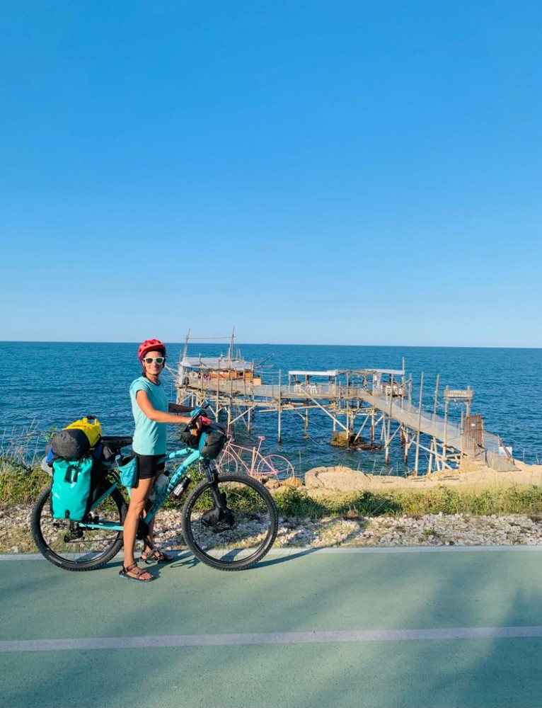 “Avevo l’idea, il progetto e un po’ l’utopia di fare il mio primo viaggio itinerante in bici e tenda e in solitaria, ma non sapevo cosa scegliere, dove andare, come gestire la cosa - racconta Giorgia Chiaro -. Ho la bici da soli due anni, poi. Ecco allora che mi compare un post su Facebook con la foto di un Trabocco ma non colgo subito le potenzialità, poi un altro post che parla del tratto fra Ortona e Vasto Marina, ma mi sembrava corto, per partire da Padova. Così, ecco l'altro post sul libro e decido di partire”.