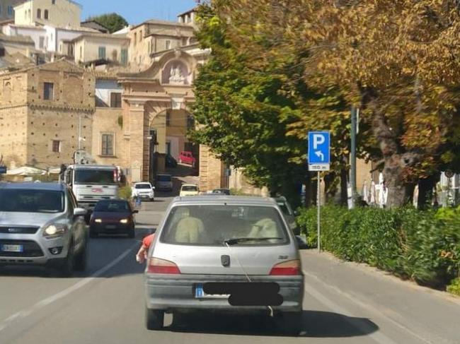 Questa mattina due pecore sono state immortalate a Penne a “spasso” in auto sul sedile posteriore di una vecchia Peugeot.