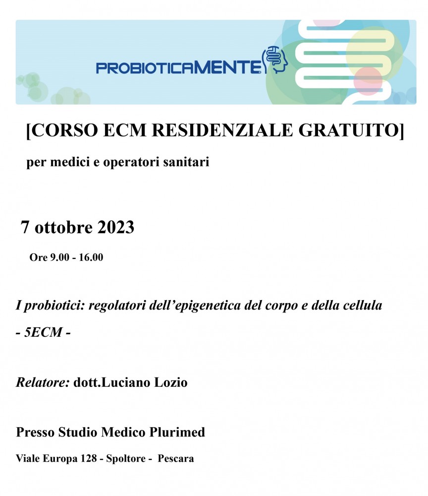 Presso lo studio medico Plurimed di Spoltore il Dott. Luciano Lozio farmacista, farmacologo, ricercatore, da oltre 20 anni impegnato nello studio dei batteri probiotici, ha tenuto un incontro dal titolo “I probiotici: regolatori dell’epigenetica del corpo e della cellula” alla presenza di medici e persone interessate all’argomento di cogente attualità.