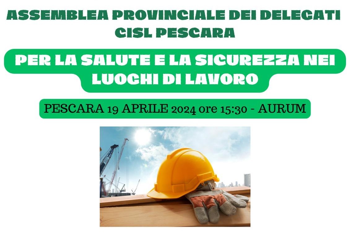 Un confronto con le istituzioni e preposti sul tema della salute e sicurezza ci sarà domani, 19 aprile, dalle ore 15.30 presso l’Aurum. “Un quadro allarmante in base ai dati sulle morti e gli infortuni nei luoghi di lavoro, che rispecchia un’illegalità diffusa, confermata anche dai dati dell’Ispettorato Nazionale, secondo cui la legge resta solo sulla carta in più di otto ispezioni su dieci. Gli infortuni mortali sono sempre in aumento a cui si aggiungono gravi infortuni sul lavoro e malattie professionali. Dobbiamo fermare questa piaga della società per salvaguardare la vita e la salute delle persone che lavorano. L’Abruzzo è tra le prime regione per numero di morti sul lavoro. Sabato siamo stati all’assemblea nazionale della Cisl a Roma, con 250 tra dirigenti, delegate, delegati, RSU, RLS, RLST e RSA, per portare le testimonianze dei nostri territori dove continua questa scia di sangue”, denunciano i due segretari della CISL, Notaro e Sangermano.