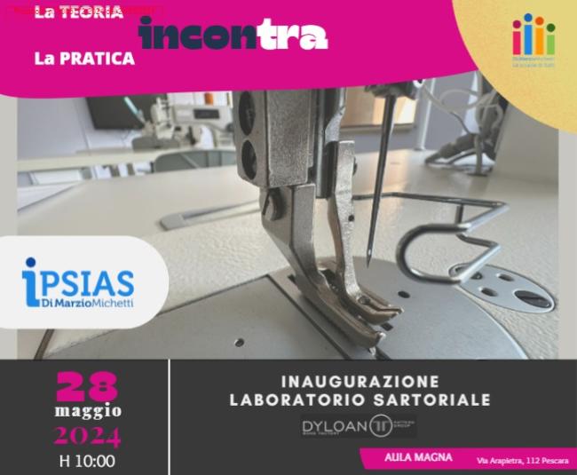 La grande tradizione del Made in Italy nel campo della Moda cresce all’IPSIAS Di Marzio-Michetti di Pescara con collaborazioni sempre più prestigiose e all’avanguardia. Martedì 28 maggio, alle ore 10, verrà inaugurato il Laboratorio sartoriale Dyloan nato grazie al contributo della “Dyloan Bond Factory”, azienda leader mondiale nell’R&D, Ingegnerizzazione, Prototipazione, Campionatura, Personalizzazione e Produzione di semilavorati, accessori, tessuti, lavorazioni high-tech e capi finiti.