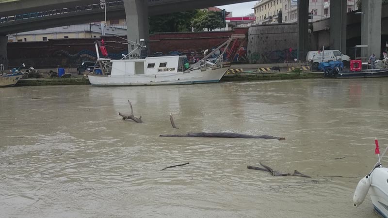 La velocità della corrente aumenta e diminuisce e il fiume porta verso la foce anche detriti di grandi dimensioni, come è possibile vedere dalle foto in basso.