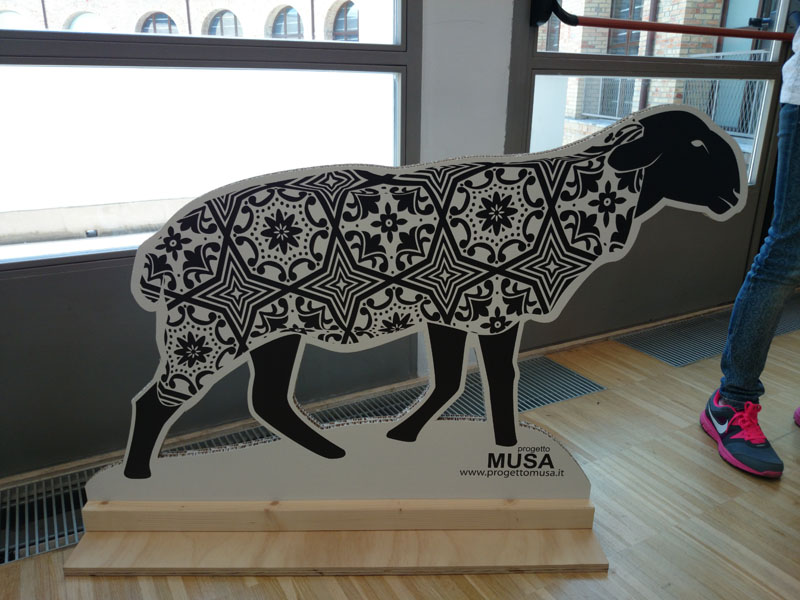 Il progetto è riferito all’omonima favola abruzzese scritta da Dario Oggiano, illustrata da Sara Patriarca e incentrata sulla nuova icona mitologica della musa ovina, affascinante pecora immaginaria dal vello ornato dai decori tipici delle coperte tradizionali in lana, nata dal Progetto MUSA durante la ricerca di spunti creativi nell’ambito dell’iconografia della cultura tessile locale.