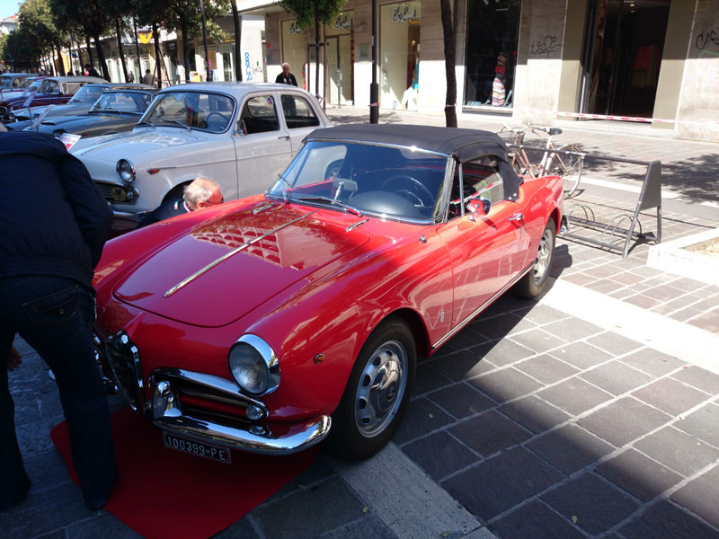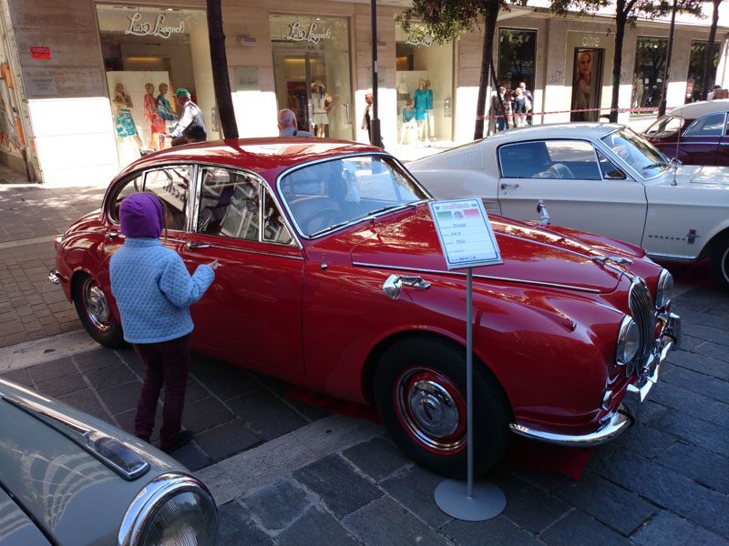 Tra i 25 pezzi che oggi abbiamo esposto a Pescara ci sono stati i classici, ossia la Topolino e la Balilla, ma soprattutto mezzi degli anni ’30, come la Buick Torpedo del ’37, o una Rolls Royce gialla del ’33 dell’avvocato Giovito Di Nicola; e poi la Aston Seven Sport del ’33, una Aston Martin DB2 del ’53, la mitica Giulietta, una Mustang Coupé del ’67 e le Jaguar.