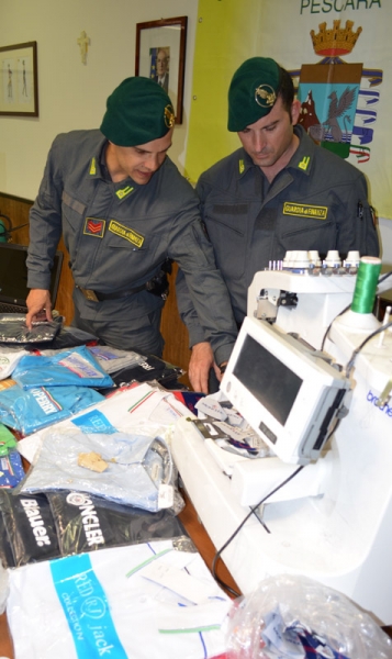 In totale sono stati sequestrati 4200 pezzi tra borse, occhiali, accessori e capi di abbigliamento con falsi marchi, migliaia di loghi, etichette in plastica, in metallo e in tessuto pronti per essere applicati a capi di vestiario. Inoltre sono stati sequestrati due macchinari industriali per cucire e ricamare, uno, dotato di schede di memoria, in grado di riprodurre elettronicamente scritte e marchi di ogni tipo.