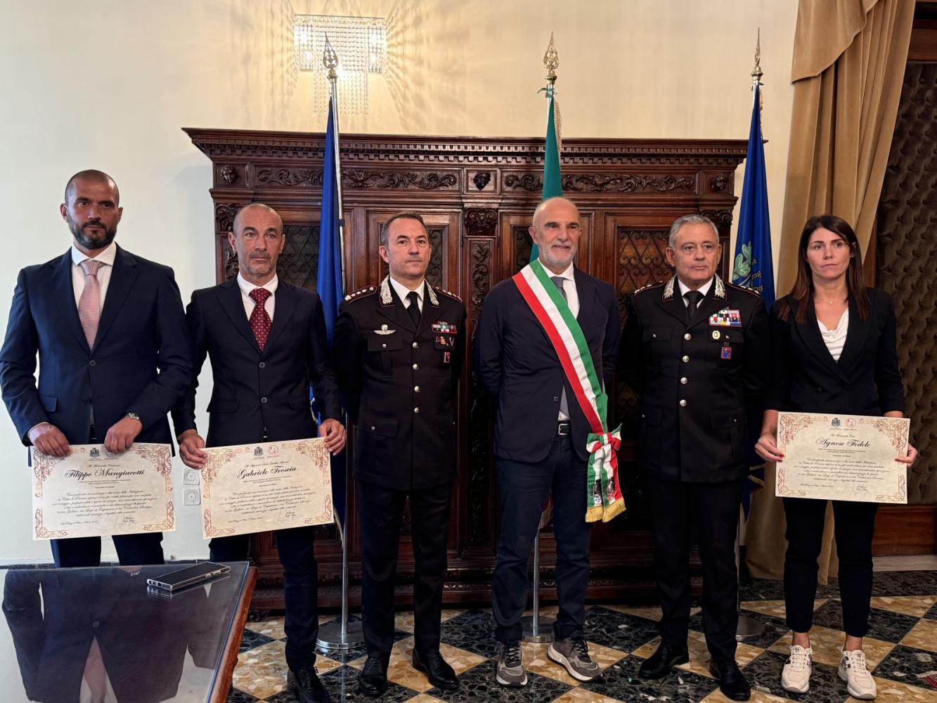 Il Comune premia i carabinieri protagonisti delle operazioni “Tre Piazze” e “Saline”