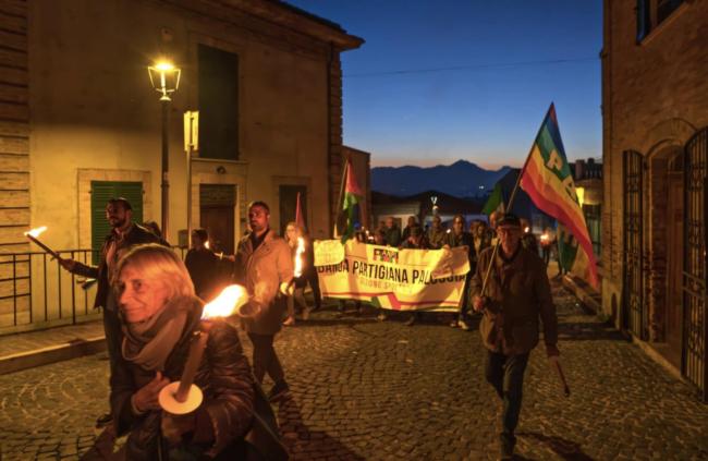 Il corteo è partito alle ore 18:30 muovendo da piazza del Municipio e si è concluso in Largo San Giovanni, cuore del borgo, dove grazie al contributo della Spray Records sono stati ospitati interventi tematici. Dal balcone del Municipio, i rappresentanti di Emergency hanno esposto il loro striscione a supporto della campagna "R1pud1a", mentre i partecipanti hanno ricevuto colombe di carta, simbolo di pace.