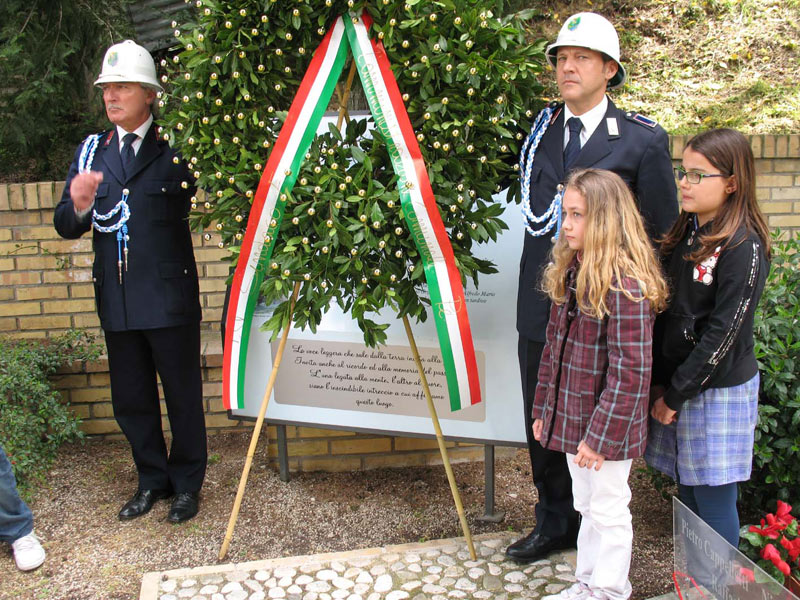 Stamane alle 12 ha preso il via la seconda Cerimonia del 25 aprile organizzata presso il Cippo della scuola 11 febbraio ’44 in via Colle Pineta, alla quale hanno preso parte l’assessore alla Pubblica Istruzione Roberto Renzetti e il consigliere Di Pino. La cerimonia si è aperta con la deposizione della Corona d’alloro portata dagli agenti della Polizia municipale in alta uniforme, seguita dal suono del ‘Silenzio’.