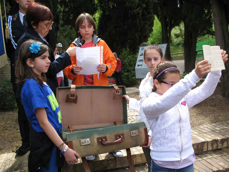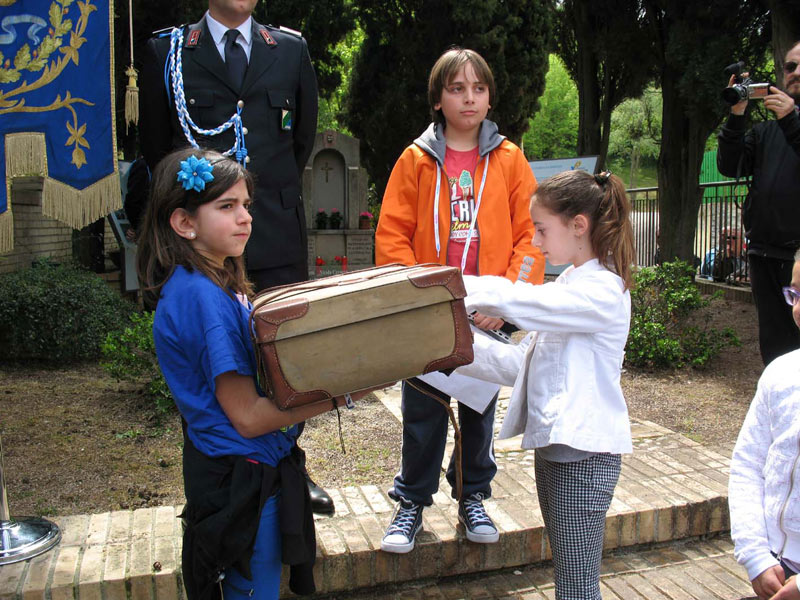 Subito dopo, gli studenti hanno ripetuto il rito della Cerimonia della Valigia, ossia le classi quinte hanno consegnato alle classi quarte una vecchia valigia in cui hanno custodito i libri, le lettere, i documenti storici e una copia della Costituzione Italiana, oltre a un gomitolo di lana rossa, simbolo del filo rosso della storia.